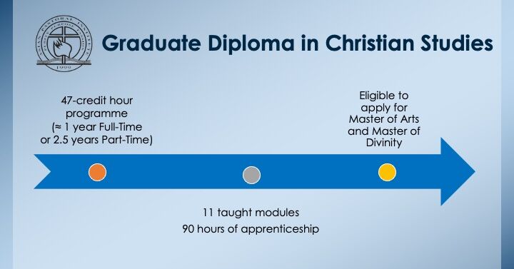 The Graduate Diploma in Christian Studies is a 46-credit programme. Students would be awarded a Graduate Diploma in Christian Studies if they